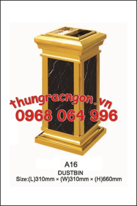 Thùng rác đá hoa cương có hình trụ chữ nhật. Thông thường phần nắp phía trên của thùng rác được thiết kế làm gạt tàn thuốc lá.