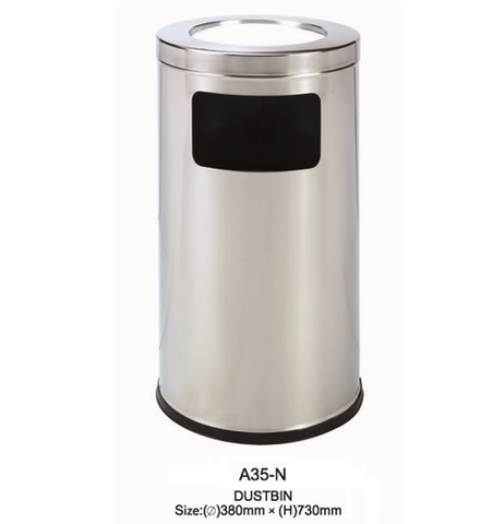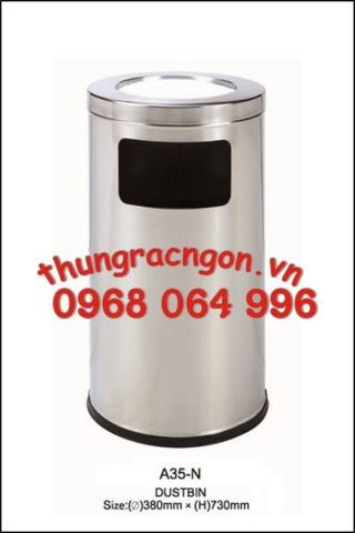 Thùng rác inox A35-N Đặc điểm: - Thùng rác inox tròn kiểu dáng lớn - Thùng rác có khay gạt tàn phía trên kết hợp cửa xả rác bên hông - Chân đế bọc...