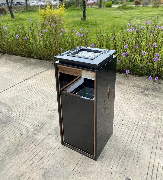 Thùng đựng rác inox có đĩa đựng gạt tàn thuốc ở trên