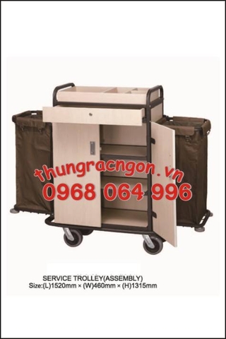 | Đặc điểm: | Xe làm vệ sinh có 4 bánh, quay 360 độ dễ dàng di chuyển Khung xe 3 tầng chữ L, được làm bằng inox Túi đựng đồ bằng vải bạt rất dày |